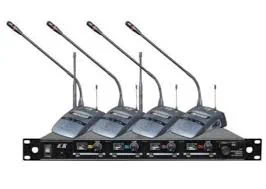 סט של 4 מיקרופונים אלחוטיים שולחניים עם משדרי UHF, תדרים משתנים.